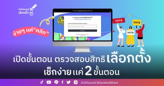 19 เมษายน 2566ผู้สื่อข่าว : เสาวภาคย์ รัตนพงศ์ สำนักงานคณะกรรมการการเลือกตั้ง ได้เปิดให้ประชาชนผู้มีสิทธิเลือกตั้ง สามารถตรวจสอบรายชื่อผู้มีสิทธิเลือกตั้ง ส.ส. ก่อนวันเลือกตั้งล่วงหน้า (7 พฤษภาคม 2566) และวันเลือกตั้งทั่วไป (14 พฤษภาคม 2566) ผ่าน 3 ช่องทาง ได้แก่ 2 ขั้นตอนตรวจสอบสิทธิเลือกตั้งผ่านเว็บไซต์ ขั้นตอน 1 : เข้าสู่เว็บไซต์ สำนักบริหารการทะเบียน ขั้นตอน 2 : กรอกเลขบัตรประชาชนและกดปุ่มตรวจสอบ ระบบจะแสดงข้อมูลรายชื่อ วันที่เลือกตั้ง จังหวัด เขตที่มีสิทธิ รวมถึงสถานที่ใช้สิทธิเลือกตั้ง หากไม่พบรายชื่อประชาชนสามารถยื่นคำร้องแจ้งเพิ่มชื่อ-ถอนชื่อ ต่อนายทะเบียนอำเภอ หรือนายทะเบียนท้องถิ่น หรือสอบถามรายละเอียดเพิ่มเติมได้ที่สายด่วน 1444