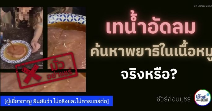 22 มีนาคม 2564ตรวจสอบข้อเท็จจริง / เรียบเรียง โดย : พีรพล อนุตรโสตถิ์, กลาง ณัฐนที บนสังคมออนไลน์แชร์คลิปวิดีโอพร้อมข้อความระบุว่า ที่อินเดียพบตะปูอยู่ในแคปซูลยา ศูนย์ชัวร์ก่อนแชร์ตรวจสอบแล้วพบว่า “ไม่เป็นความจริง” บทสรุป : ไม่จริง และ ไม่ควรแชร์ต่อ• ไม่ใช่ที่อินเดีย และยังไม่พบที่มาของคลิปวิดีโอที่แน่ชัด คลิปวิดีโอและข้อความที่ถูกแชร์คลิปวิดีโอความยาว 0.30 นาที ถูกแชร์มาพร้อมข้อความระบุว่า ที่อินเดียพบตะปูอยู่ในแคปซูลยา และเตือนภัยให้ประเทศอื่นระวัง ในคลิปวิดีโอมีการทดลองแกะแคปซูลยาออกจากแผงเพื่อดูสิ่งที่บรรจุอยู่ภายในแคปซูล นาทีที่ 0.10 พบตะปูขนาดเล็ก 1 ตัว ในแคปซูลยาสีน้ำเงิน และนาทีที่ 0.24 พบตะปูขนาดเล็ก 6 ตัว ในแคปซูลยาสีเหลือง กลายเป็นคลิปที่ถูกแชร์ต่ออย่างแพร่หลายบนสังคมออนไลน์ และมีผู้ส่งเรื่องเข้ามาสอบถามข้อเท็จจริงกับศูนย์ชัวร์ก่อนแชร์ FACT CHECK : ตรวจสอบข้อเท็จจริงของคลิปวิดีโอที่ถูกแชร์ศูนย์ชัวร์ก่อนแชร์ สำนักข่าวไทย อสมท ตรวจสอบพบว่า หน่วยงานด้านการตรวจสอบข้อเท็จจริงในประเทศอินเดีย 2 แห่ง คือ Factly […]