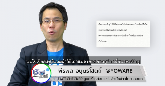 ชัวร์ก่อนแชร์ : การนำแมลงออกจากหูโดยการใช้ไฟฉายใช้ได้ จริงหรือ ?