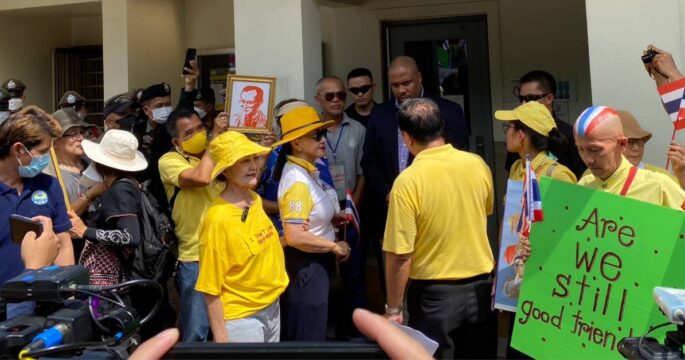 กลุ่มคนเชียงใหม่รักสถาบัน รวมตัวยื่นหนังสือกงสุลสหรัฐ ให้หยุดแทรกแซงไทย และการแก้ ม.112