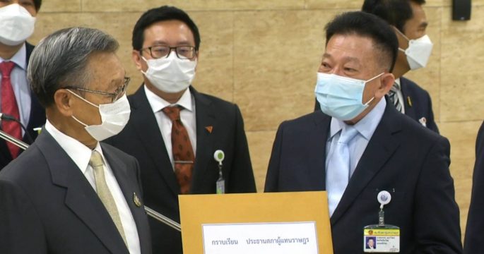 รัฐสภา 16 ส.ค.- ฝ่ายค้านยื่นอภิปรายไม่ไว้วางใจ นายกรัฐมนตรีและ 5 รัฐมนตรีร่วมรัฐบาล ชี้บกพร่องผิดพลาดในการบริหารสถานการณ์แก้ปัญหาโควิด19 เศรษฐกิจเสียหาย แจงไม่มีชื่อ “ประวิตร” เพราะไม่ตรงเป้าอภิปราย