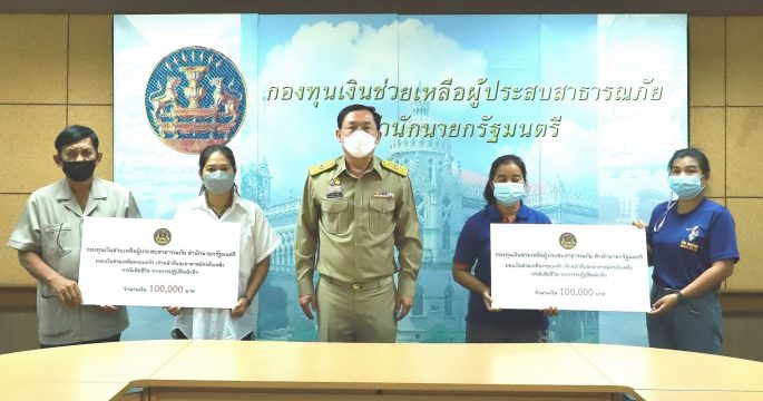 ทำเนียบรัฐบาล 12 ก.ค.- รมต.ประจำสำนักนายกฯ มอบเงินช่วยเหลือฯ จนท.และอาสาสมัคร เหตุเพลิงไหม้และอาคารถล่มหมู่บ้านกฤษดานคร 31 ยกย่องเป็นผู้กล้า ปฏิบัติหน้าที่ด้วยความเสียสละ