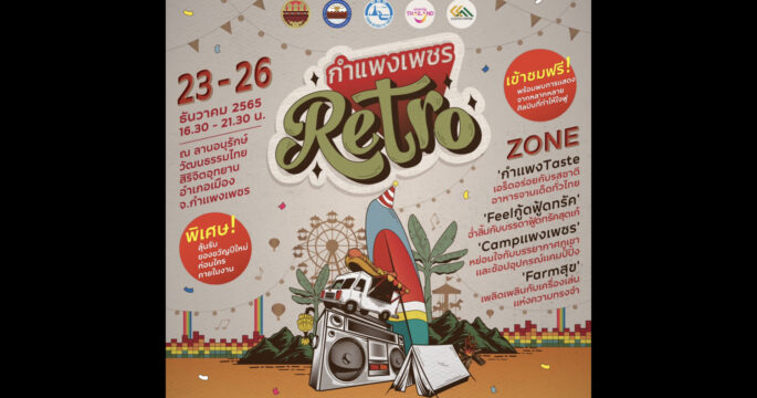 กำแพงเพชร 16 ธ.ค.- ททท. สนับสนุนจัดงาน “กำแพงเพชร Retro” 23-25 ธ.ค. 65 เน้นสร้างประสบการณ์ ชวนสัมผัสเสน่ห์เมืองชากังราว กระตุ้นการท่องเที่ยวเมืองรอง