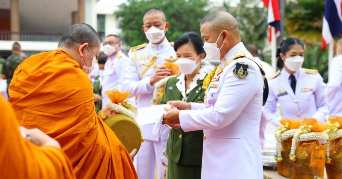 โดยในเวลา 07.09 น. ผู้บัญชาการทหารเรือ ได้นำผู้เข้าร่วมพิธีถวายราชสักการะ พระบรมฉายาลักษณ์ พระบาทสมเด็จพระบรมชนกาธิเบศร มหาภูมิพลอดุลยเดชมหาราช บรมนาถบพิตร ก่อนจัดพิธีทำบุญตักบาตรพระภิกษุสามเณร จำนวน 36 รูป บริเวณ ลานทัศนาภิรมย์ หอประชุมกองทัพเรือ