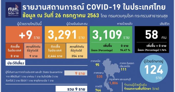 ศบค.เผย สถานการณ์ปัจจุบันประเทศไทยอยู่อันดับที่ 105 ของโลก พบผู้ป่วยรายใหม่ 9 คน กลับจากต่างประเทศทั้งหมด