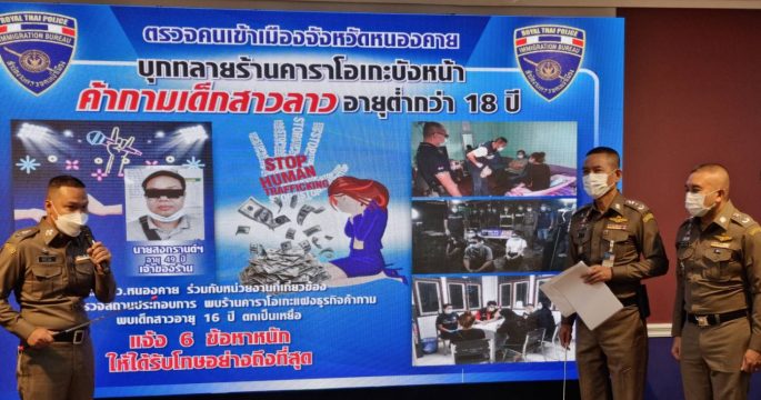 ตม.หนองคาย แฝงตัวเป็นลูกค้าร้านคาราโอเกะ ล่อซื้อบริการทางเพศหญิง สปป.ลาว ก่อนขยายผลจับเจ้าของร้าน และหญิง สปป.ลาว 3 คน ดำเนินคดีฐานค้ามนุษย์