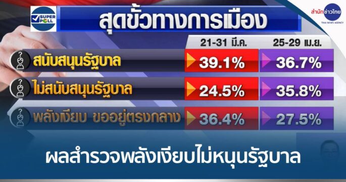 ซูเปอร์โพล เผยผลสำรวจระบุพลังเงียบไม่หนุนรัฐบาล