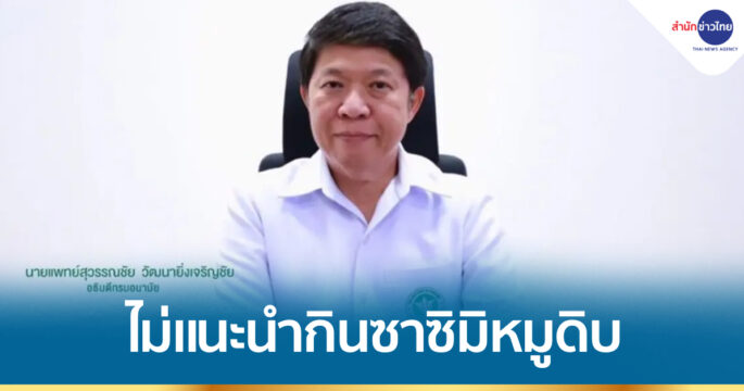 กรมอนามัย เตือนกินซาซิมิหมูดิบ เสี่ยงได้รับเชื้อแบคทีเรียสเตร็ปโตค็อกคัส ซูอิส (Streptococcus suis) เสี่ยงโรคไข้หูดับ ย้ำควรกินแบบปรุงสุกด้วยความร้อนสูงกว่า 70 องศาฯ ขึ้นไป ไม่น้อยกว่า 5 นาที และล้างมือให้สะอาดด้วยสบู่และน้ำก่อนกินทุกครั้ง เพื่อสุขอนามัยที่ดี