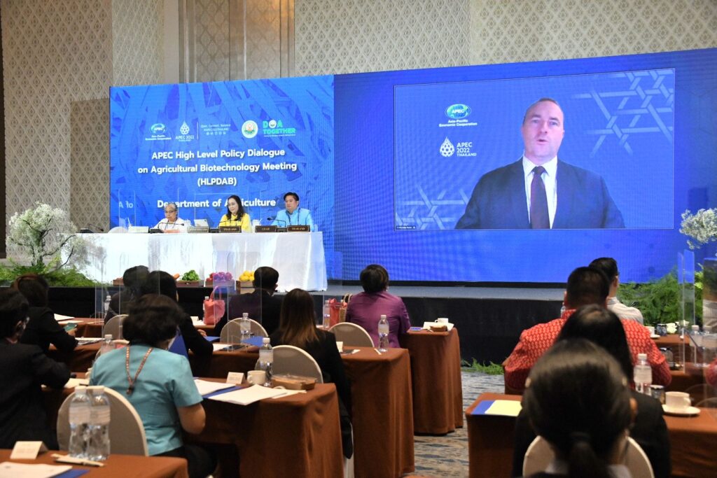 นางสาวมนัญญา ไทยเศรษฐ์ รัฐมนตรีช่วยว่าการกระทรวงเกษตรและสหกรณ์เปิดการประชุมหารือระดับสูงด้านเทคโนโลยีชีวภาพทางการเกษตร (HLPDAB) เอเปค (APEC High-Level Policy Dialogue on Agricultural Biotechnology: HLPDAB) ที่จัดขึ้น ณ โรงแรมพูลแมน คิง เพาเวอร์ กรุงเทพมหานคร โดยกล่าวต้อนรับเจ้าหน้าที่ระดับสูงซึ่งเป็นผู้แทนประเทศสมาชิกที่เข้าร่วมประชุมทั้งแบบออนไลน์และออนไซต์