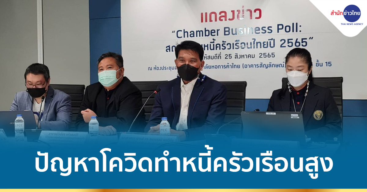 กรุงเทพฯ 25 ส.ค.-ประธานที่ปรึกษาศูนย์พยากรณ์เศรษฐกิจและธุรกิจ มหาวิทยาลัยหอการค้าไทยชี้จากปัญหาโควิดปิดประเทศทำให้คนไทยมีหนี้ครัวเรือนสูงขึ้นต่อเนื่อง แถมปีนี้เจออุบัติเหตุเศรษฐกิจโลกหนุนทำให้หนี้สูง ย้ำแต่ไม่กังวลเพราะหนี้จะลดลงได้จากการลงทุนรัฐและเอกชน