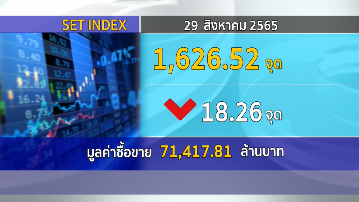 กทม. 29 ส.ค.-ตลาดหลักทรัพย์ ปิดวันนี้ที่ระดับ 1,626.52 จุด ลดลง 18.26 จุด (-1.11%) มูลค่าการซื้อขาย 71,417.81 ล้านบาท