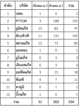 ทั้งนี้ ตามข้อมูลกรมธุรกิจพลังงาน ระบุว่าทั่วประเทศมีโรงบรรจุแอลพีจี 554 แห่ง เป็นเครือข่ายผู้ค้ามาตรา 7 ทั้งหมด 12 ราย.-สำนักข่าวไทย