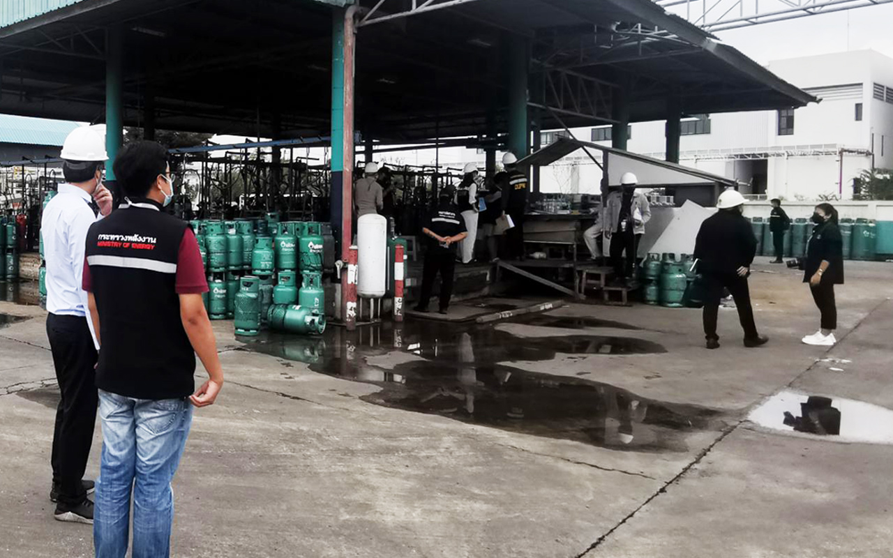 ธพ.ได้ส่งเจ้าหน้าที่ลงพื้นที่ตรวจสอบสถานที่เกิดเหตุร่วมกับเจ้าหน้าที่สำนักงานพลังงานจังหวัดสมุทรปราการ โดยโรงบรรจุก๊าซหุงต้มดังกล่าว ได้รับใบอนุญาตเลขที่ สป 1210021 ใช้ได้ถึงวันที่ 31 ธันวาคม 2565 และเป็นตัวแทนค้าต่างของ บริษัท ปตท. น้ำมันและการค้าปลีก จำกัด (มหาชน) หรือโออาร์ ซึ่งเจ้าหน้าที่ดับเพลิงได้เข้าระงับเหตุ