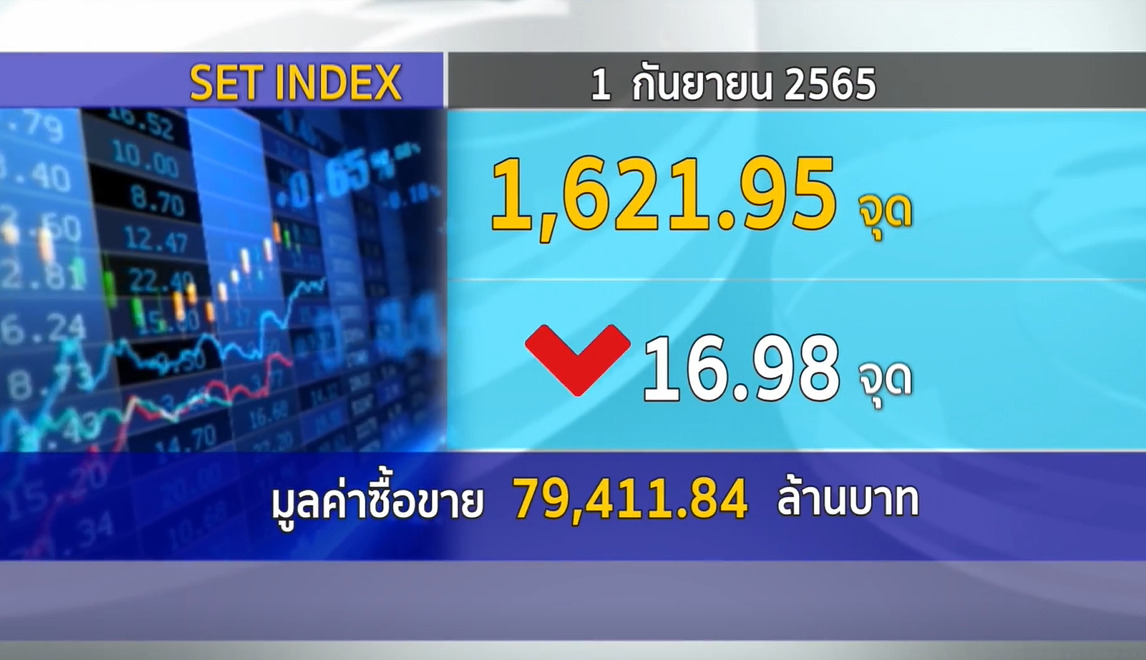 กทม. 1 ก.ย.-ตลาดหลักทรัพย์ ปิดวันนี้ที่ระดับ 1,621.95 จุด ลดลง 16.98 จุด (-1.04%) มูลค่าการซื้อขาย 79,411.84 ล้านบาท