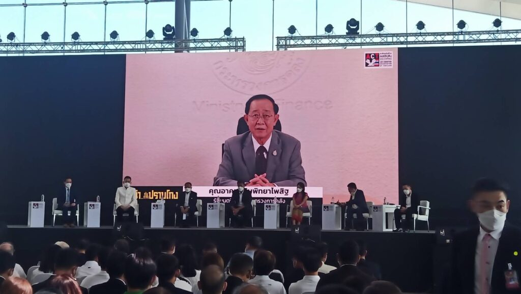 นายอาคม เติมวิทยาไพสิฐ รัฐมนตรีว่าการกระทรวงการคลัง ที่ร่วมเสวนา ผ่านระบบวีดีโอคอนเฟอเรนซ์ ระบุว่าปัญหาทุจริตของประเทศไทย ส่วนใหญ่ เกิดขึ้นกับการจัดซื้อจัดจ้าง ของภาครัฐ ซึ่งมีเอกชนมาเกี่ยวข้อง ทำให้ประเทศไทยถูกจัดอันดับปัญหาคอร์รัปชันอยู่ที่ 110 จาก 180 ประเทศทั่วโลก หากไปดูคะแนนจะพบว่าได้ต่ำมากๆ ทั้งเรื่องของระบบงาน และเรื่องของคน หากไม่มีสำนึกในการทำงาน แต่ระบบที่ดีจะช่วยแก้ปัญหาการคอร์รัปชันได้