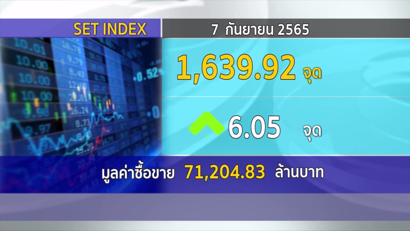 กทม. 7 ก.ย. – ตลาดหลักทรัพย์ ปิดวันนี้ที่ระดับ 1,639.92 จุด เพิ่มขึ้น 6.05 จุด (+0.37%) มูลค่าการซื้อขาย 71,204.83 ล้านบาท