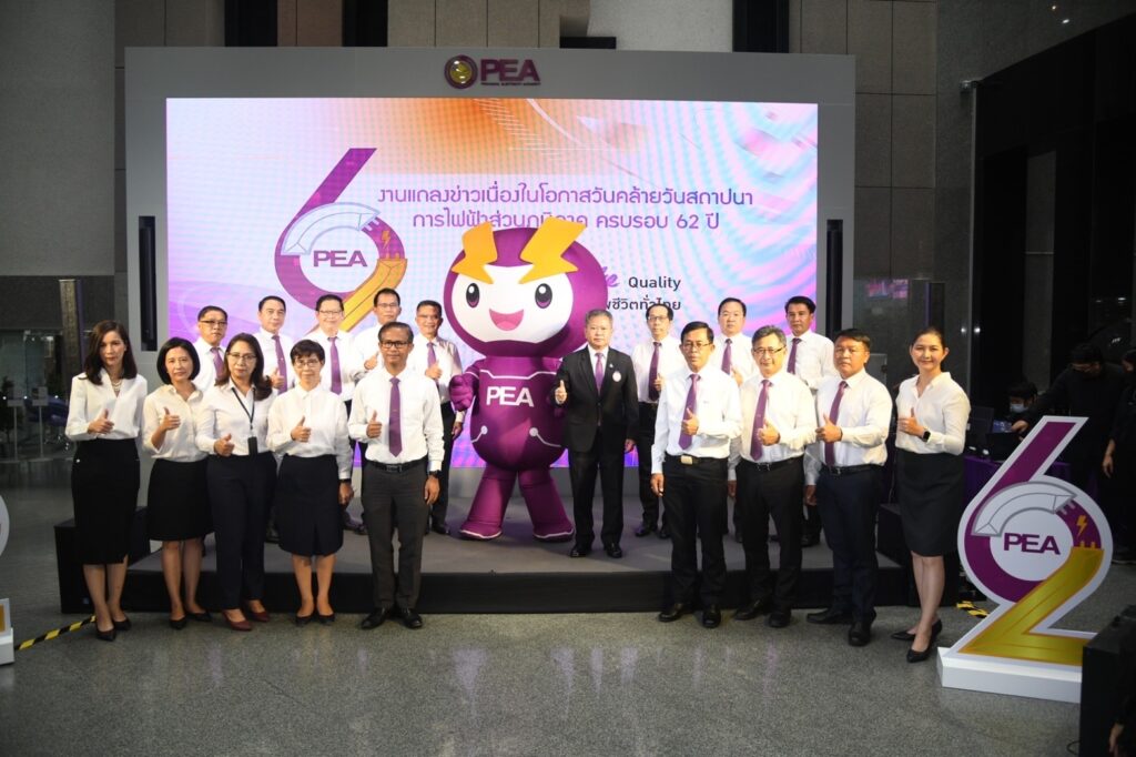 8 ก.ย. – การไฟฟ้าส่วนภูมิภาค (PEA) ครบรอบ 62 ปี ในวันที่ 28 กันยายน 2565 ให้บริการพลังงานไฟฟ้าและดำเนินธุรกิจอื่นที่เกี่ยวเนื่อง เพื่อตอบสนองความต้องการของลูกค้าให้เกิดความพึงพอใจทั้งด้านคุณภาพและบริการ โดยการพัฒนาองค์กรอย่างต่อเนื่อง มีความรับผิดชอบต่อสังคมและสิ่งแวดล้อมและเป็นองค์กรชั้นนำที่ทันสมัยในระดับภูมิภาค มุ่งมั่นให้บริการพลังงานไฟฟ้าและธุรกิจเกี่ยวเนื่องอย่างครบวงจร มีประสิทธิภาพ เชื่อถือได้เพื่อพัฒนาคุณภาพชีวิต เศรษฐกิจและสังคมอย่างยั่งยืน ให้บริการพลังงานไฟฟ้าที่มั่นคง ปลอดภัยและมุ่งมั่นให้ประชาชนมีไฟฟ้าใช้ครบทุกครัวเรือนผ่านโครงการต่างๆ ดังนี้