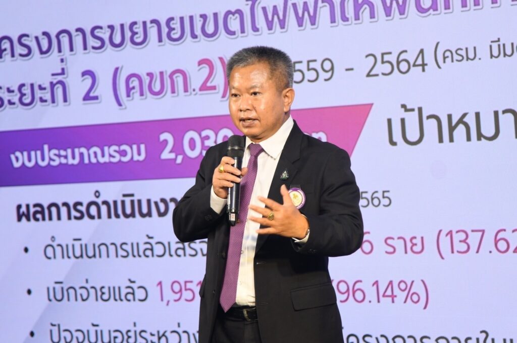 - โครงการขยายเขตไฟฟ้าให้บ้านเรือนราษฎรรายใหม่ ระยะที่ 2 (คฟม.2) ดำเนินการขยายเขตให้กับประชาชนที่ห่างไกลได้มีไฟฟ้าใช้ โดยไม่เสียค่าใช้จ่ายในการขยายเขต ตามคุณสมบัติของ PEA ซึ่งเป็นไปตามนโยบายรัฐบาลและยุทธศาสตร์กระทรวงมหาดไทย เพื่อยกระดับคุณภาพชีวิต กระจายการเจริญเติบโตของเศรษฐกิจทุกภูมิภาค