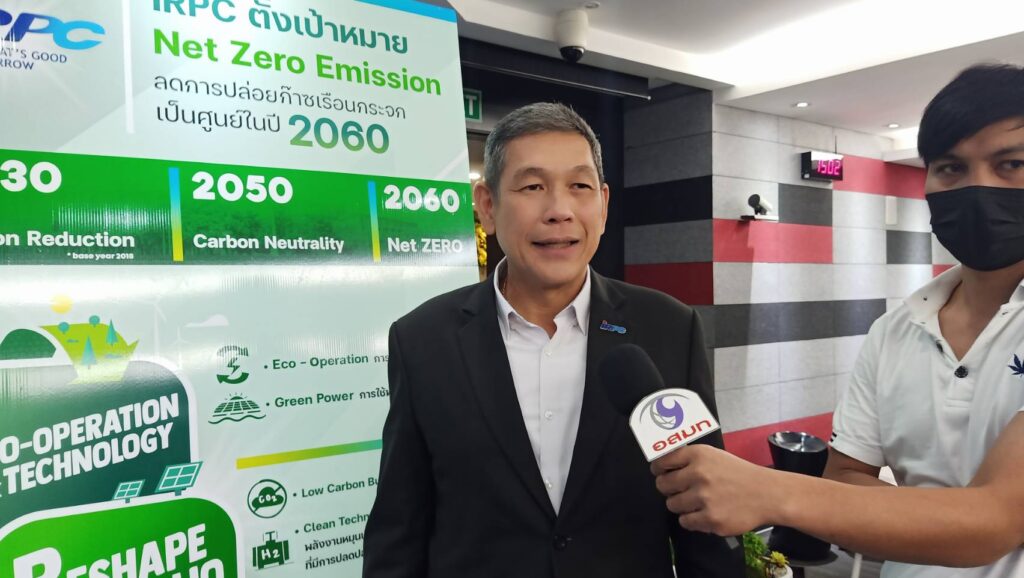 กรุงเทพฯ 8 ก.ย.65- IRPC ตั้งเป้า องค์กร Net Zero Emission ปล่อยก๊าซเรือนกระจกเป็นศูนย์ในปี 2060 เผย ใช้ 3 กลยุทธ์ ปรับกระบวนการผลิต มุ่งธุรกิจพลังงานสะอาด ใช้ผลิตภัณฑ์คาร์บอนต่ำ พร้อมร่วมกลุ่ม ปตท. สร้างต้นแบบใช้เทคโนโลยีดักจับและกักเก็บก๊าซคาร์บอนไดออกไซด์