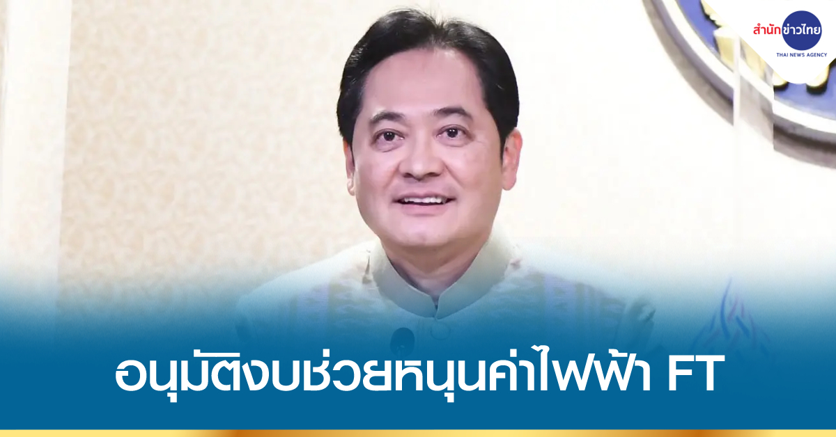 ทำเนียบฯ 14 ก.ย. -ครม.อนุมัติงบ 9 พันล้านบาท ช่วยอุดหนุนค่าไฟฟ้า FT ครอบคลุมผู้ใช้ไฟฟ้า 21 ล้านราย บ้านอยู่อาศัย 300-500 หน่วย/เดือน เริ่ม ก.ย.-ธ.ค.65
