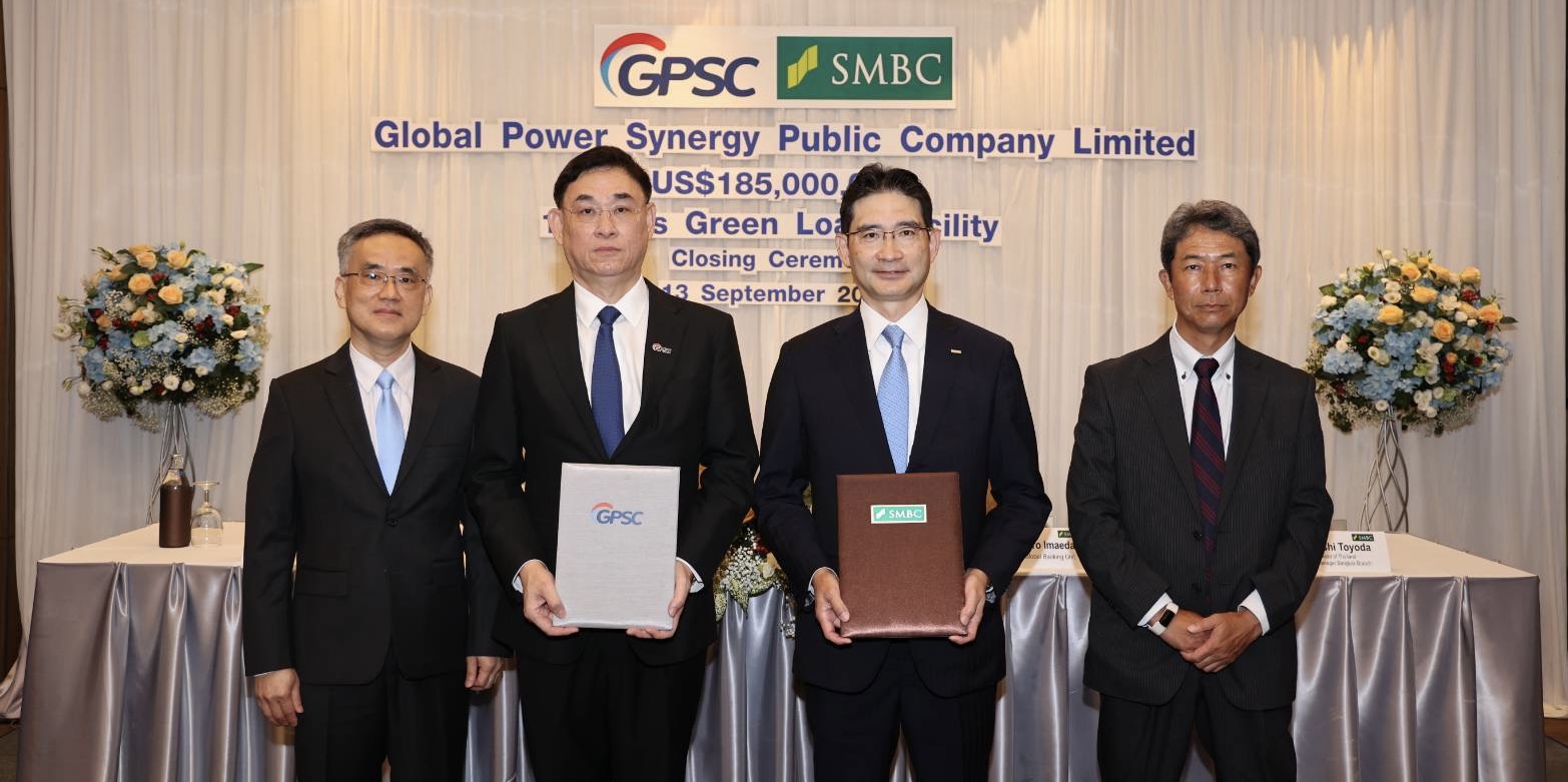นายวรวัฒน์ พิทยศิริ ประธานเจ้าหน้าที่บริหารและกรรมการผู้จัดการใหญ่ บริษัท โกลบอล เพาเวอร์ ซินเนอร์ยี่ จำกัด(มหาชน) หรือ GPSC แกนนำนวัตกรรมธุรกิจไฟฟ้ากลุ่ม ปตท. เปิดเผยว่า วันนี้ (13 ก.ย. 2565) บริษัทจีพีเอสซี ศูนย์บริหารการเงิน จำกัด (GPSC TC) ซึ่งเป็นบริษัทในกลุ่มที่ GPSC ถือหุ้น 100% ได้ลงนามสัญญากับธนาคาร ซูมิโตโมมิตซุย แบงค์กิ้ง คอร์ปอเรชัน (SMBC) โดย Mr. Tetsuro Imaeda, Senior Managing Executive Office Co-Head of Global Banking Unit, SMBC เข้าร่วมพิธีลงนามสัญญาสินเชื่อสีเขียว (Green Loan) ซึ่งนับเป็นวงเงินสินเชื่อสีเขียวครั้งแรกของกลุ่ม ปตท. ในการสนับสนุนสินเชื่อรูปแบบดังกล่าว วงเงิน 185 ล้านเหรียญสหรัฐฯ อายุ 10 ปี เพื่อดำเนินโครงการพลังงานสะอาดในอนาคต