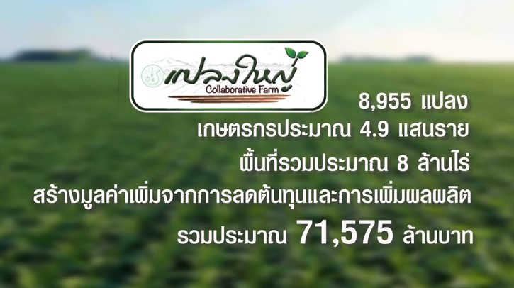 กระทรวงเกษตรและสหกรณ์จัดประกวดแปลงใหญ่ดีเด่น เพื่อคัดเลือกแปลงใหญ่ที่มีผลงานโดดเด่น เป็นตัวอย่างในการขยายผลการส่งเสริมเกษตรแบบแปลงใหญ่ เผยแพร่เกียรติคุณและผลงานของแปลงใหญ่ดีเด่นสู่สาธารณะ และกระตุ้นการพัฒนาและเพิ่มขีดความสามารถการดำเนินงานแปลงใหญ่ให้มีประสิทธิภาพ บรรลุตามวัตถุประสงค์ของโครงการระบบส่งเสริมเกษตรแบบแปลงใหญ่ โดยในปีนี้มีกลุ่มแปลงใหญ่ต้นแบบ ได้รับรางวัลทั้งสิ้นจำนวน 6 รางวัล