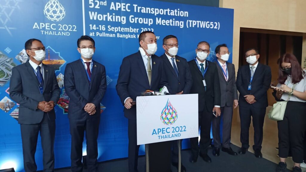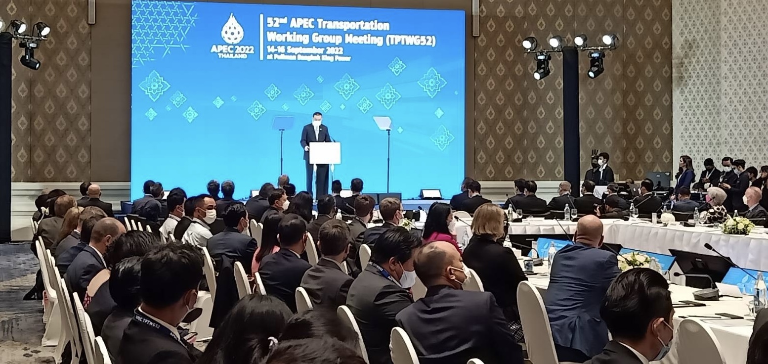 นายศักดิ์สยาม ชิดชอบ รัฐมนตรีว่าการกระทรวงคมนาคม เปิดเผยภายหลังเป็นประธานการประชุมเอเปค ด้านการขนส่ง APEC Transportation Working Group Meeting (TPTWG52) ที่จัดจัดระหว่างวันที่ 14-16 กันยายน ที่รร.พูลแมน ประตูน้ำว่า การประชุมวันนี้มีผู้แทนจาก 14 เขตเศรษฐกิจ จากสมาชิก 21 เขตเศรษฐกิจเข้าร่วม ส่วนที่เหลือเข้าร่วมประชุมแบบออนไลน์ โดยกระทรวงคมนาคม ได้นำเสนอยุทธศาสตร์ สร้างไทยเป็นศูนย์กลางโลจิสติกส์ของอาเซียน ครอบคลุมทั้งทางบก ทางราง ทางน้ำ และทางอากาศ ซึ่งเริ่มเห็นเป็นรูปธรรม จากการพัฒนาเขตเศรษฐกิจภาคตะวันออก หรือ อีอีซี ,