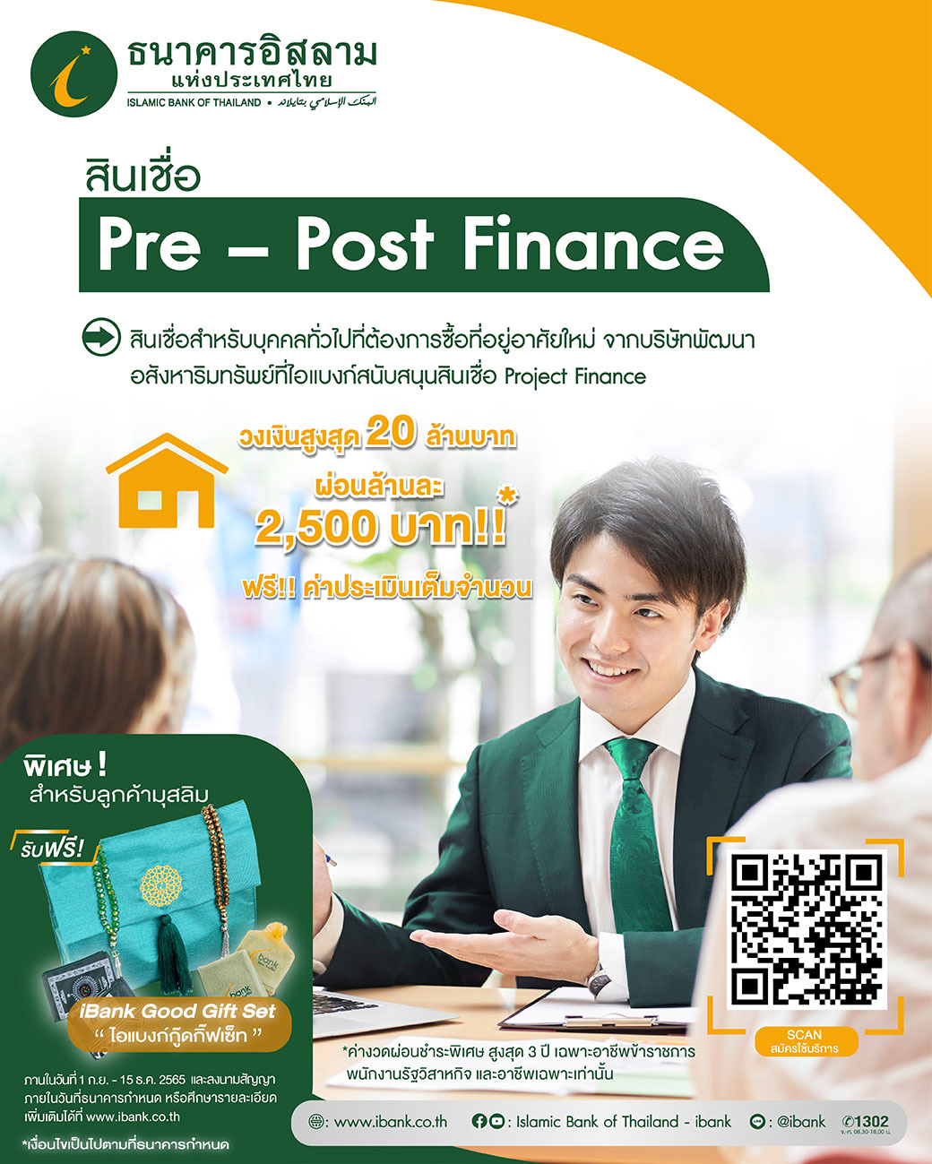 ธนาคารอิสลามแห่งประเทศไทย(ไอแบงก์) ปล่อยโปรโมชั่นสินเชื่อสำหรับลูกค้าที่ต้องการซื้อบ้านใหม่ กับโครงการที่ไอแบงก์สนับสนุนสินเชื่อ Project Finance วงเงินสูงสุด 20 ล้านบาท คิดอัตรากำไรต่ำเริ่มต้น 2.00% ต่อปี ไม่ต้องประเมินหลักประกัน พิเศษ ลูกค้าที่มีอาชีพเป็นข้าราชการ รัฐวิสาหกิจ และอาชีพเฉพาะ ขอสินเชื่อบ้านควบคู่กับรีไฟแนนซ์หนี้บัตรเครดิตหรือสินเชื่อบุคคล ผ่อนเพียงล้านละ 2,500 บาทต่อเดือน