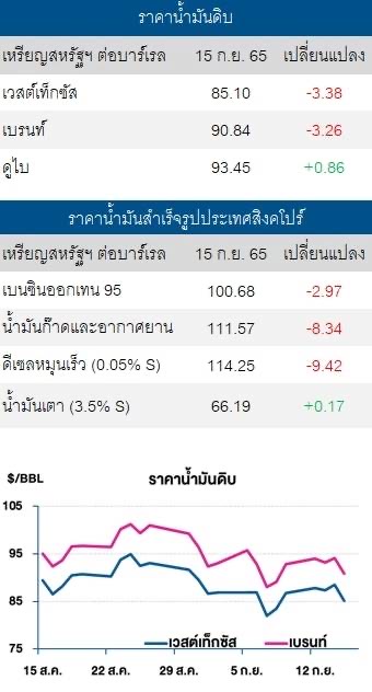 บมจ.ไทยออยล์ รายงานว่า ราคาน้ำมันดิบปรับลดลง หลังประธานาธิบดีโจ ไบเดน เจรจาข้อตกลงเบื้องต้นกับพนักงานการรถไฟฯ เพื่อหลีกเลี่ยงการหยุดดำเนินการขนส่งอาหารและพลังงานต่าง ๆ และการประท้วงที่จะเกิดขึ้นในวันนี้ (16 ก.ย.65) เพื่อเรียกร้องให้มีการขึ้นค่าแรงและปรับปรุงสวัสดิการแรงงาน ในขณะที่ราคาดีเซลลดลงสวนทางราคาน้ำมันดูไบ จากข่าวลือเรื่องการประกาศโควตาการส่งออกน้ำมันสำเร็จรูปของจีนเพิ่มเติม อย่างไรก็ตาม อุปทานในภูมิภาคเอเชียยังปรับตัวเพิ่มขึ้นต่อเนื่อง.-สำนักข่าวไทย