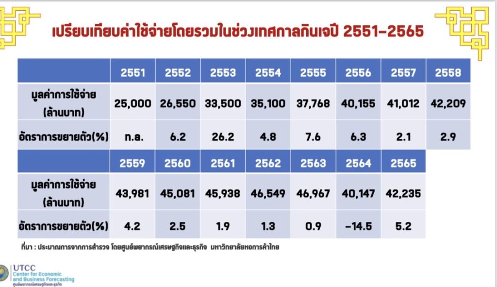นายธนวรรธน์ พลวิชัย อธิการบดีมหาวิทยาลัยหอการค้าไทย และประธานที่ปรึกษาศูนย์พยากรณ์เศรษฐกิจและธุรกิจมหาวิทยาลัยหอการค้าไทย เปิดเผยถึงผลสำรวจ พฤติกรรมการใช้จ่ายในช่วงเทศกาลกินเจ และความคิดเห็นต่อสถานการณ์ปัจจุบัน ว่า ประชาชนให้ความสนใจที่จะเริ่มจับจ่ายและเข้าร่วมเทศกาลกินเจมากขึ้น โดยคาดว่าจะมีการจับจ่ายในช่วงเทศกาลกินเจรวมกว่า 42,235 ล้านบาท หรือ ปรับตัวเพิ่มขึ้นกว่าร้อยละ 5.2 แต่ยังไม่ถือว่าเข้าสู่ภาวะปกติเนื่องจากการจับจ่ายยังคงอยู่ในระดับต่ำในรอบ 7 ปี โดยประชาชนส่วนใหญ่ยังมองว่าเศรษฐกิจยังไม่ฟื้นตัวเต็มที่ทำให้ระมัดระวังในการจับจ่าย