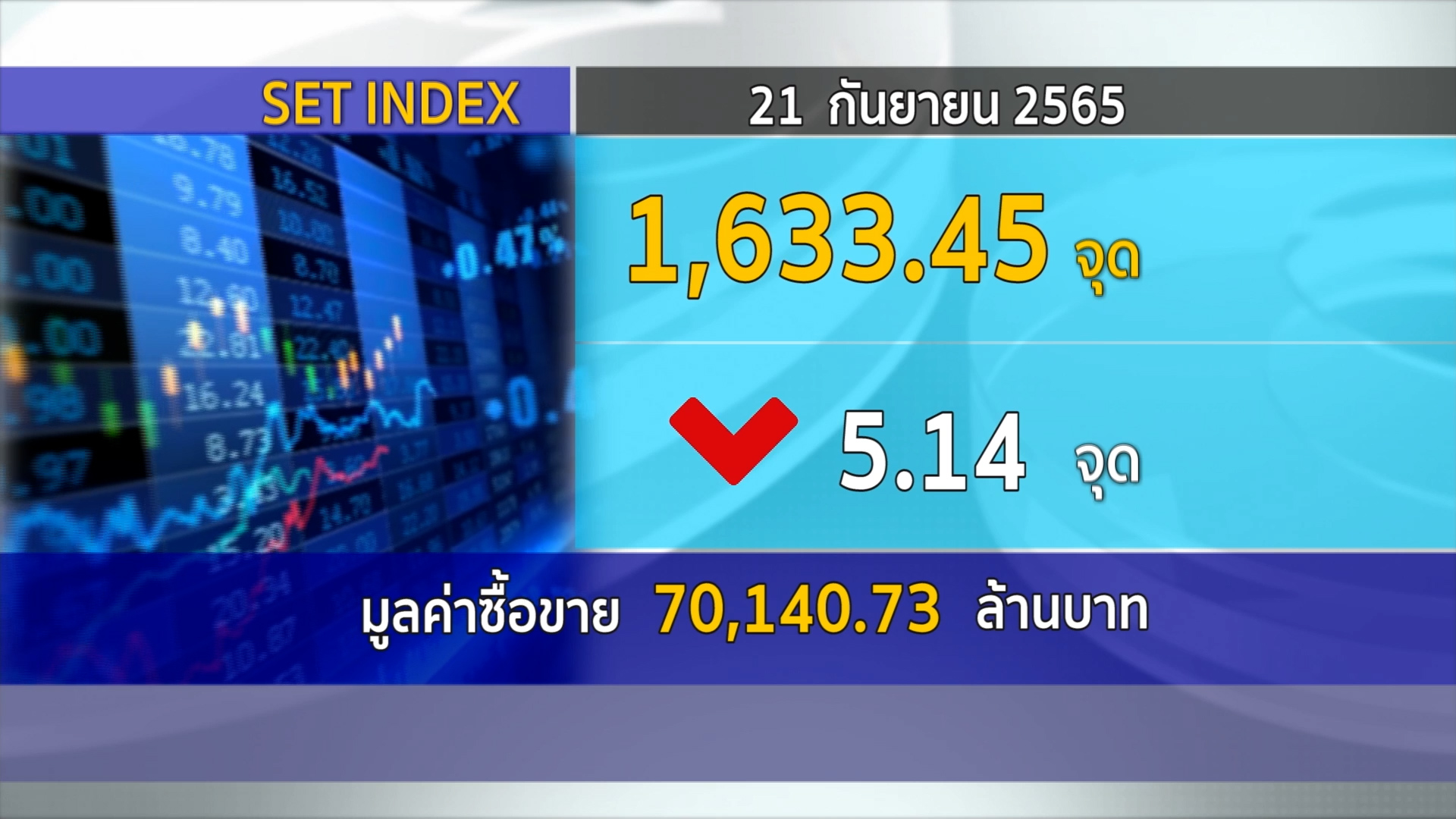 กทม. 21 ก.ย.- ตลาดหลักทรัพย์ ปิดวันนี้ที่ระดับ 1,633.45 จุด ลดลง 5.14 จุด (-0.31%) มูลค่าการซื้อขาย 70,140.73 ล้านบาท