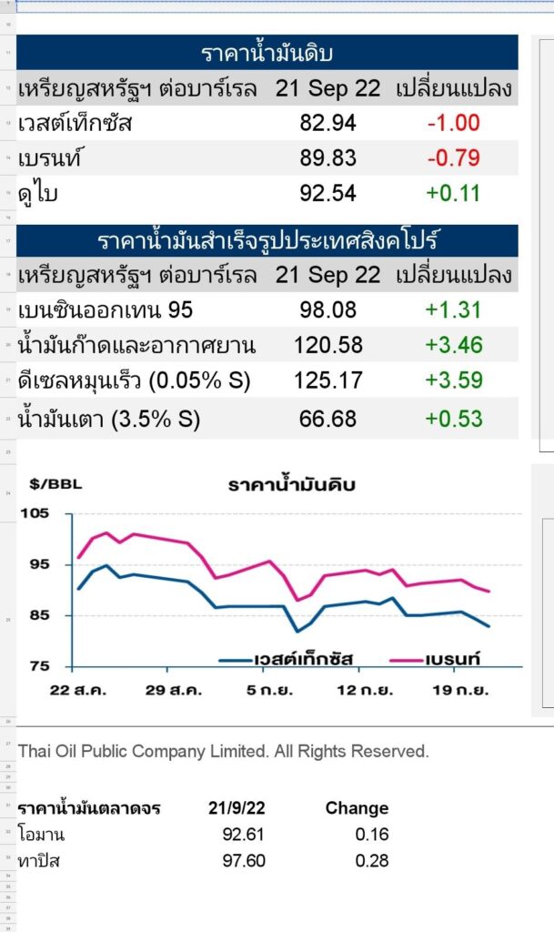 ด้านบมจ.ไทยออยล์รายงานราคาน้ำมันดิบปรับลด หลังเฟดปรับขึ้นดอกเบี้ยร้อยละ 0.75 เพื่อสกัดเงิน.-สำนักข่าวไทย
