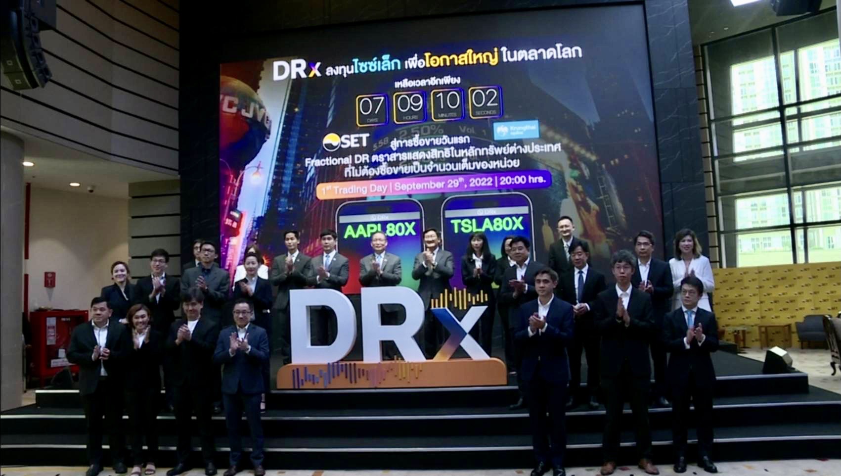 DRx เป็นตราสารแสดงสิทธิในหลักทรัพย์ต่างประเทศ หรือ DR (Depositary Receipt) ประเภทหนึ่งที่ซื้อขายในตลาดหลักทรัพย์ฯ ซึ่งผู้ลงทุนจะได้รับสิทธิประโยชน์เสมือนลงทุนในหลักทรัพย์ต่างประเทศโดยตรง แต่มีจุดเด่นที่ผู้ลงทุนสามารถส่งคำสั่งซื้อขายได้โดยไม่จำเป็นต้องครบ 1 หน่วย DRx (เริ่มต้นที่ 0.0001 หน่วย) หรือซื้อขายเป็นจำนวนเงินบาท อีกทั้ง DRx ยังเปิดซื้อขายตามเวลาทำการของหลักทรัพย์อ้างอิงในตลาดต่างประเทศ เพื่อให้ผู้ลงทุนสามารถติดตามการเคลื่อนไหวของราคาหลักทรัพย์อ้างอิงและปรับการลงทุนได้ทันสถานการณ์ สำหรับ 2 DRx ที่จะทำการซื้อขายครั้งแรกนี้ ได้แก่ AAPL80X ที่อ้างอิงบริษัท แอปเปิ้ล อิงค์ และ TSLA80X ที่อ้างอิงบริษัท เทสล่า อิงค์ ซึ่งจดทะเบียนอยู่ในตลาดหลักทรัพย์ Nasdaq ประเทศสหรัฐอเมริกา ออกโดยธนาคารกรุงไทย จำกัด (มหาชน) โดยทั้ง 2 DRx นี้จะเริ่มเปิดการซื้อขายในวันที่ 29 ก.ย. 2565 เวลา 20.00 น. ถึง 04.00 น. ของวันถัดไป