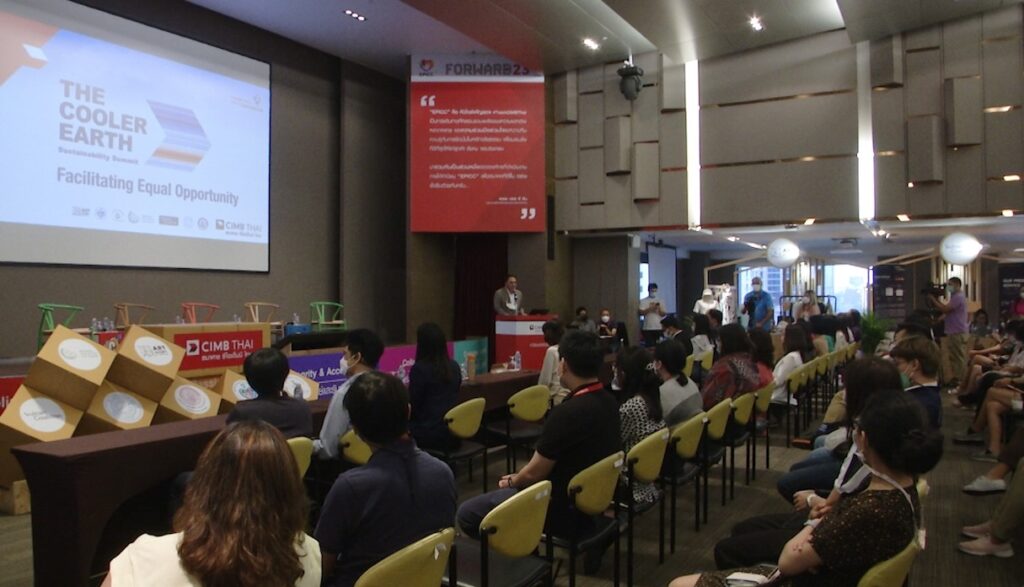 ธนาคาร ซีไอเอ็มบี ไทย จัดงานเสวนา The Cooler Earth: Sustainability Summit 2022ภายใต้หัวข้อ “Facilitating Equal Opportunity” : สนับสนุนการเปลี่ยนผ่านสู่สังคมที่เท่าเทียมอย่างยั่งยืน เพื่อให้เกิดการตื่นตัวในสังคมเกี่ยวกับการรักษาสมดุลของสภาวะแวดล้อมบนโลกของเรา ควบคู่ไปกับการรณรงค์ในเรื่อง ความเท่าเทียมทางสังคมของผู้พิการ ด้วยการเชิญองค์กรต่างๆ อาทิ โรงพยาบาลจักษุบ้านแพ้ว กรมส่งเสริมและพัฒนาคุณภาพชีวิตคนพิการมูลนิธิคนตาบอดไทย และบริษัท Vulcan Coalition สตาร์ทอัพ เอไอ ช่วยเหลือผู้พิการทางสายตา มาร่วมแสดงทรรศนะและแลกเปลี่ยนความคิดเห็น เพื่อส่งเสริมความรู้ความเข้าใจให้แก่ภาคสังคม และผลักดันให้เกิดการขับเคลื่อนต่อไป