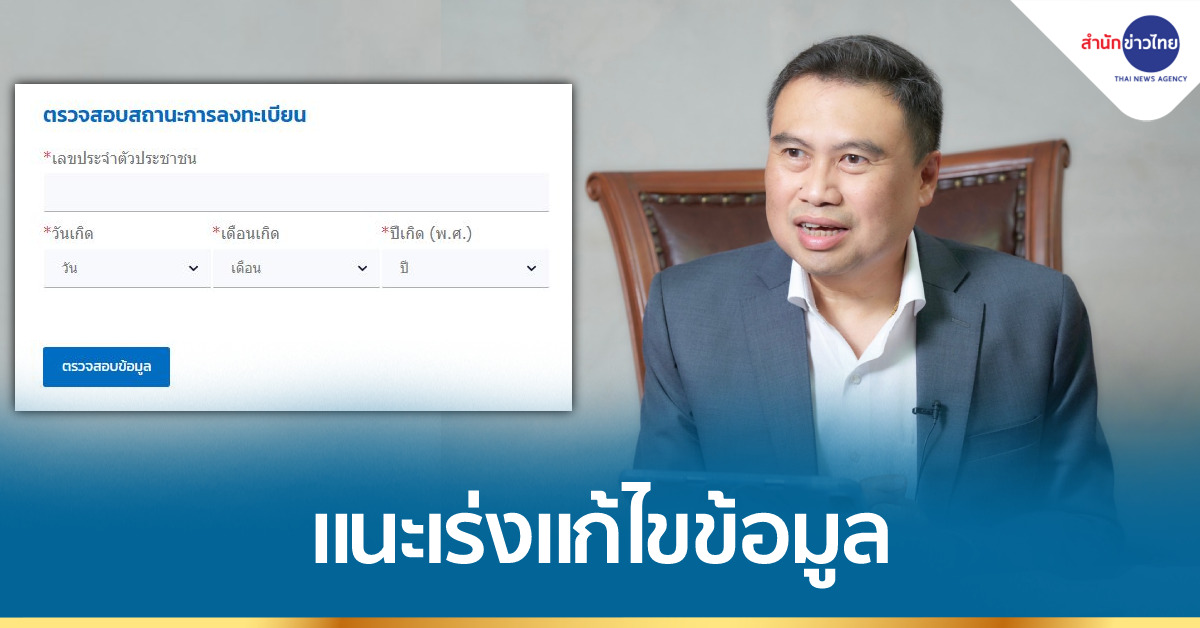 ทั้งนี้ ผู้ลงทะเบียนทุกคนที่ได้ดำเนินการแก้ไขข้อมูลเสร็จเรียบร้อยแล้ว ให้ผู้ลงทะเบียน “ตรวจสอบสถานะการลงทะเบียน” อีกครั้งในทุกวันศุกร์ของสัปดาห์ถัดไป โดยสามารถตรวจสอบสถานะการลงทะเบียนดังกล่าวได้ด้วยตนเองผ่านทางเว็บไซต์ https://บัตรสวัสดิการแห่งรัฐ.mof.go.th หรือ https://welfare.mof.go.th หรือตรวจสอบผ่านหน่วยงานรับลงทะเบียนทุกหน่วยงาน .-สำนักข่าวไทย