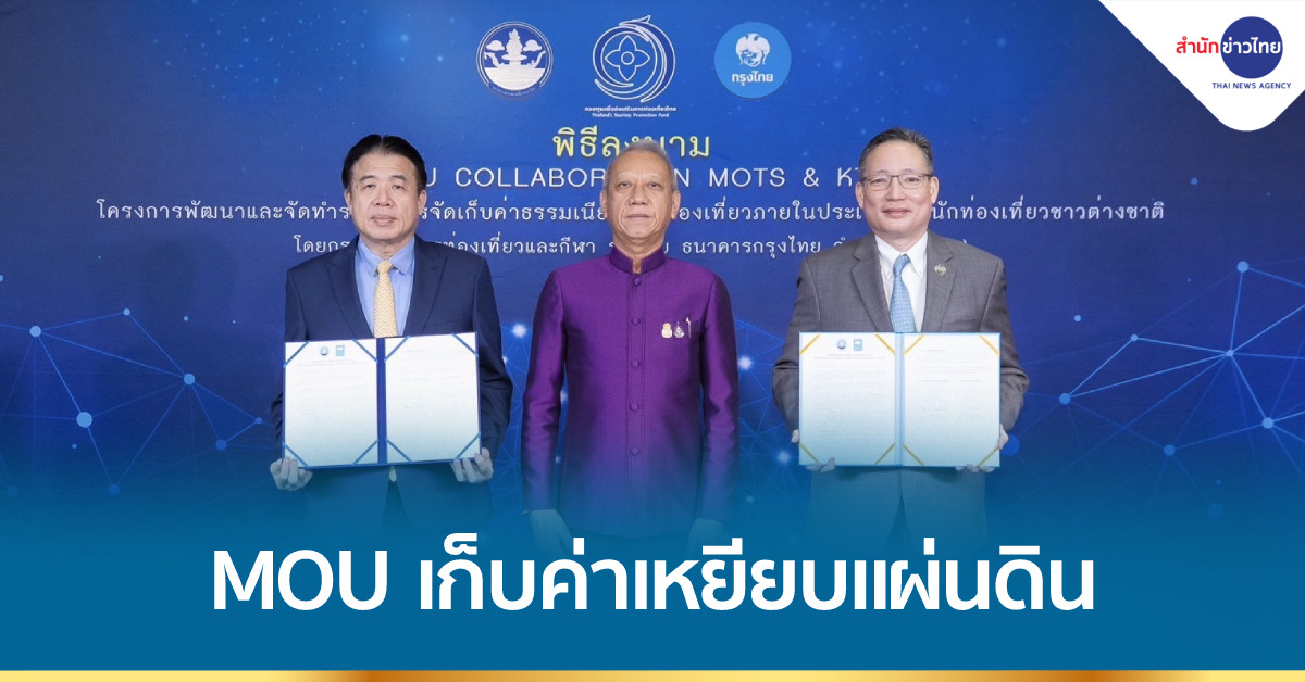 กรุงเทพฯ 27 ก.ย.- กระทรวงท่องเที่ยวฯ จับมือ ธ. กรุงไทย เก็บค่าธรรมเนียมเหยียบแผ่นดินไทย เริ่มปี 66 นำมาใช้เป็นทุนหมุนเวียนพัฒนาการท่องเที่ยว และทำประกันภัยแก่นักท่องเที่ยวชาวต่างชาติ