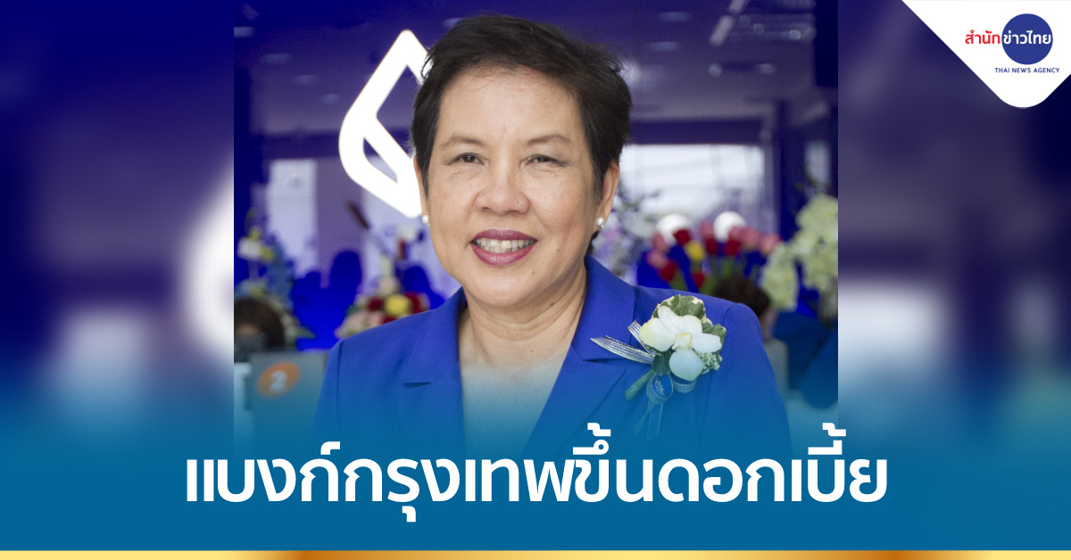 กรุงเทพฯ 28 ก.ย.- ธนาคารกรุงเทพ นำร่องปรับอัตราดอกเบี้ยเงินฝากและเงินกู้เพิ่มขึ้น หลัง กนง. ขึ้นดอกเบี้ย ชี้ขึ้นตาม คาดการณ์ถึงแนวโน้มการฟื้นตัวของเศรษฐกิจที่ชัดเจนขึ้น และเพื่อช่วยลดความเสี่ยงที่เงินเฟ้อจะปรับสูงขึ้น