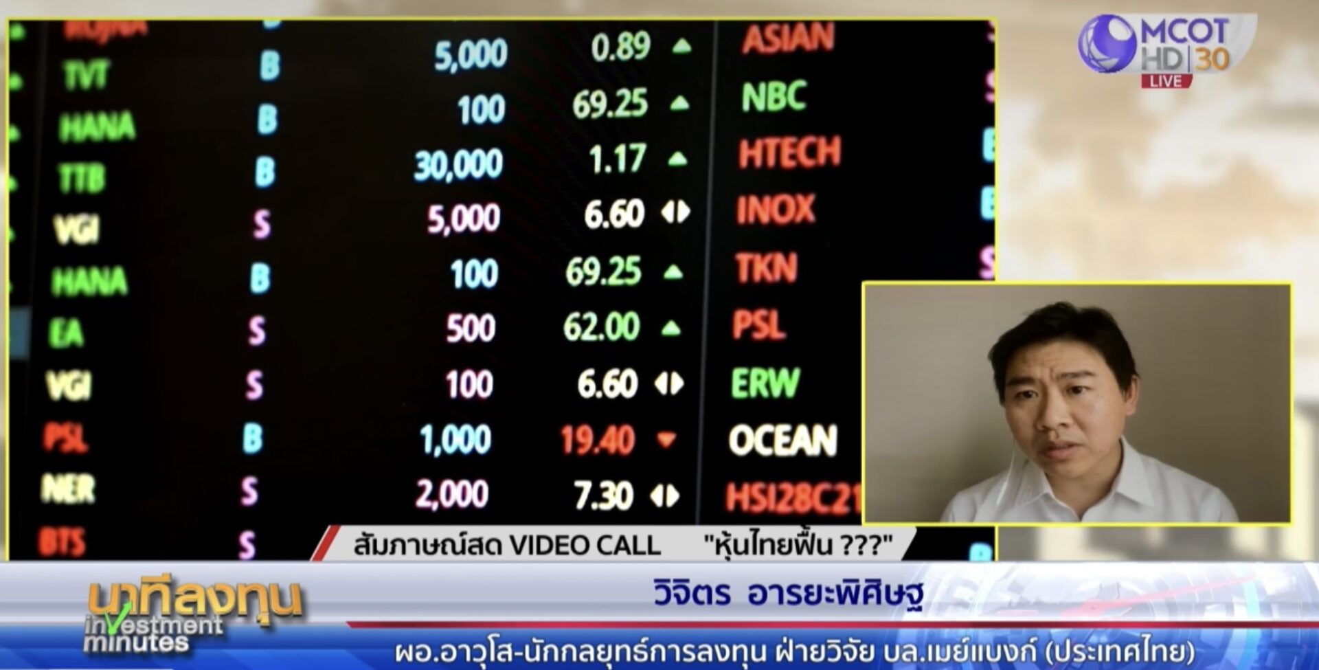 นายวิจิตร อารยะพิศิษฐ ผู้อำนวยการ อาวุโส-นักกลยุทธ์การลงทุน ฝ่ายวิจัย บล. เมย์แบงก์ (ประเทศไทย) กล่าวว่าหุ้นไทยฟื้นตัว ตามตลาดโลกและราคาน้ำมันดิบที่ขยับขึ้นหลังราคาลดลงมาหลายวัน เนื่องจากสตอกน้ำมันสหรัฐลดลง ในขณะที่ธนาคารกลางอังกฤษ (BoE) ประกาศรับซื้อพันธบัตรรัฐบาลไม่จำกัดจำนวนลดความผัน ส่งผลให้อัตราผลตอบแทนพันธบัตรรัฐบาลสหรัฐ (Bond Yield) และทำให้ค่าเงินดอลลาร์สหรัฐอ่อนค่า ในขณะที่คาดว่าธนาคารของไทยจะทยอยขึ้นดอกเบี้ย หลังคณะกรรมการนโยบายการเงิน( กนง.)มีมติวานนี้ ปรับขึ้นดอกเบี้ย 0.25% สู่ระดับ1.00% ก็มีแรงซื้อเข้ามาในหุ้นกลุ่มธนาคารพาณิชย์ ดังนั้นหุ้นแนะนำวันนี้ คือ BBL และ PTTEP