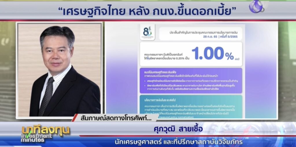 นายศุภวุฒิ สายเชื้อ นักเศรษฐศาสตร์ และที่ปรึกษาสถาบันวิจัยภัทร กล่าวเตือนว่าหากนักท่องเที่ยวไม่เข้ามาจำนวนสูงตามที่ กนง.คาดการณ์ นับเป็นความเสี่ยงที่จะทำให้เงินบาทอ่อนค่าลงไปอีกจากระดับกว่า 38 บาท/ดอลลาร์สรัฐในขณะนี้ ยิ่งหากอัตราดอกเบี้ยไทยและสหรัฐมีส่วนต่างกันสูงอย่างต่อเนื่อง ก็ยิ่งมีความเสี่ยงเรื่องบาทอ่อนค่าและกระทบดุลบัญชีเดินสะพัดให้ขาดดุลเพิ่มขึ้นอีก ดังนั้น ธนาคารแห่งประเทศไทย และ กนง.ก็น่าจะพิจารณาทำอย่างไรให้ลดความเสี่ยง เช่น ขึ้นดอกเบี้ยในรอบต่อไปให้สูงขึ้นลดส่วนต่างกับสหรัฐ เป็นต้น
