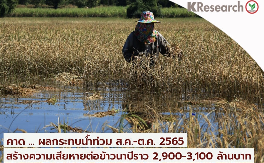 กรุงเทพฯ 29 ก.ย. -บริษัทศูนย์วิจัยกสิกรไทย มูลค่าความเสียหายข้าวนาปีจากน้ำท่วม 2,900-3,100 ล้านบาท
