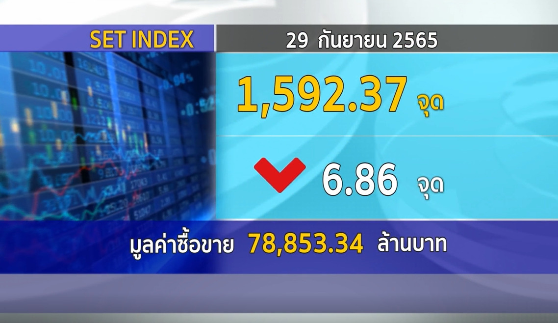 กทม. 29 ก.ย.-ตลาดหลักทรัพย์ ปิดวันนี้ที่ระดับ 1,592.37 จุด ลดลง 6.86 จุด (-0.43%) มูลค่าการซื้อขาย 78,853.34 ล้านบาท