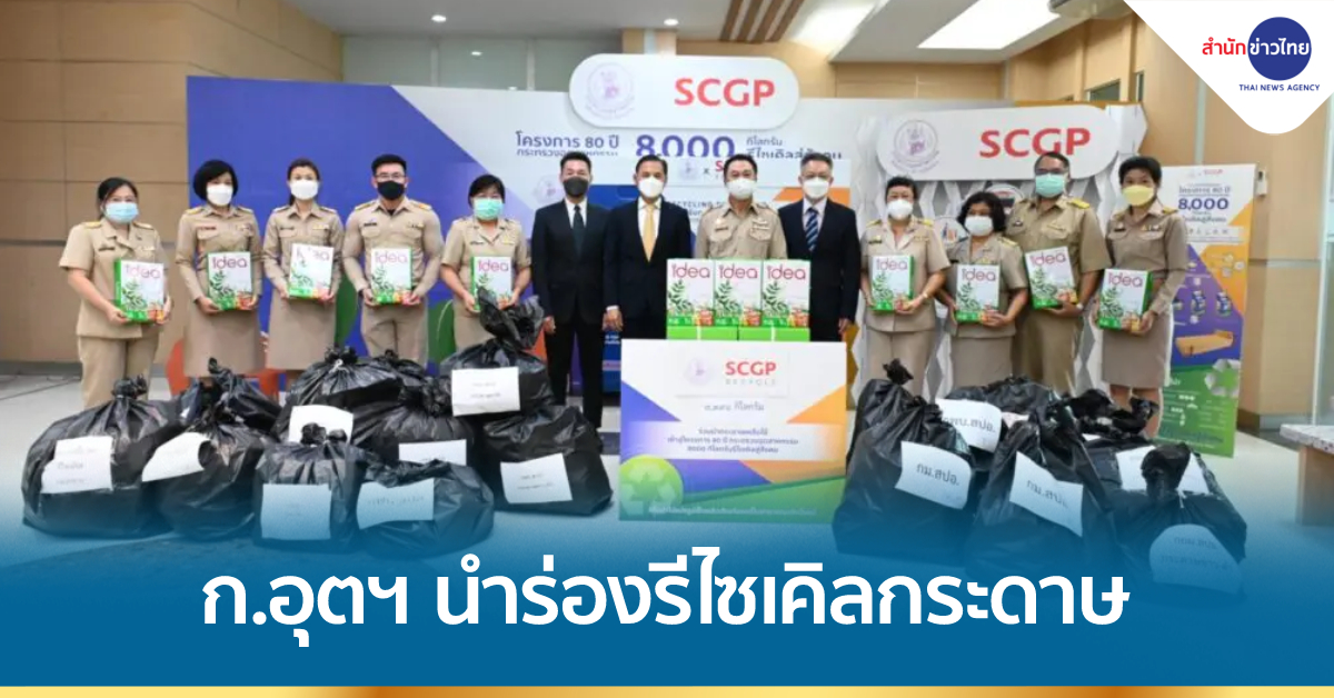 นายกอบชัย สังสิทธิสวัสดิ์ ปลัดกระทรวงอุตสาหกรรม เปิดเผยว่า กระทรวงฯ เป็นหน่วยงานราชการนำร่องที่นำกระดาษใช้งานแล้วมารีไซเคิลกลับมาใช้ประโยชน์อย่างเป็นรูปธรรม ผ่านโครงการ “80 ปี กระทรวงอุตสาหกรรม 8,000 กิโลกรัม รีไซเคิลสู่สังคม” ซึ่งดำเนินการร่วมกับ บริษัท เอสซีจี แพคเกจจิ้ง จำกัด (มหาชน) หรือ SCGP โดยรวบรวมคัดแยกเศษกระดาษกลับมาใช้งานใหม่เพื่อเป็นวัตถุดิบในภาคอุตสาหกรรม และรีไซเคิล เพื่อมอบแก่สังคม ซึ่งสอดคล้องกับหลักเศรษฐกิจหมุนเวียนและนโยบาย BCG Economy ของรัฐบาล (Bio-Circular-Green Economy) หลังจากเปิดตัวโครงการ กระทรวงฯ ได้ตั้งกล่องรับเศษกระดาษขนาดใหญ่ที่ด้านล่างอาคาร และขนาดเล็ก ของทุกหน่วยงานภายในและมีกิจกรรมรณรงค์เรื่องการแยกกระดาษ เพื่อประโยชน์สูงสุด เมื่อรับเศษกระดาษเต็มแล้ว SCGP จะส่งรถมาจัดเก็บประมาณเดือนละ 2 ครั้ง แบ่งออกเป็น 3 ประเภท คือ กระดาษขาวดำ กระดาษกล่อง และกระดาษรวม ตั้งแต่วันที่ 1 มี.ค.-31 ส.ค. 65 เป็นเวลา 6 เดือน สามารถรวมกระดาษใช้งานแล้วจำนวนทั้งสิ้น 11,596 กิโลกรัม เกินกว่าเป้าหมาย 8,000 กิโลกรัม