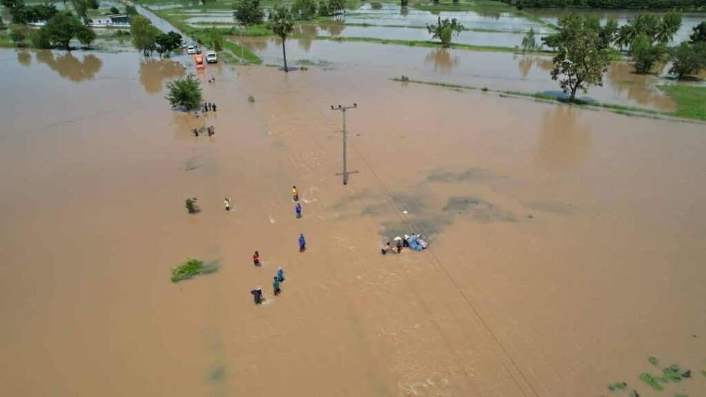 ชัยภูมิ 3 ต.ค.- ผู้ว่าฯ ชัยภูมิ เร่งช่วยเหลือผู้ประสบภัยน้ำท่วม อ.บำเหน็จณรงค์ กระแสน้ำยังไหลท่วมหลายพื้นที่ ประสานซ่อมถนน ทางรถไฟ