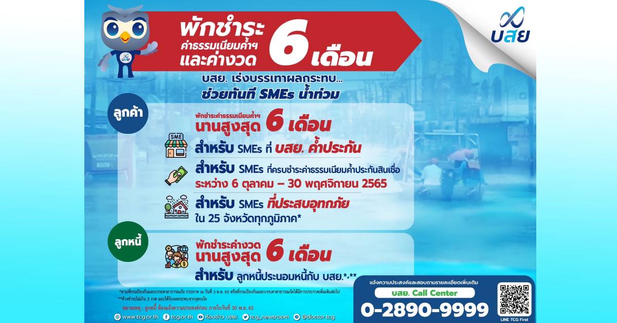 7 ต.ค. – บสย. เร่งบรรเทาผลกระทบ ช่วยทันที SMEs น้ำท่วม 25 จังหวัด พักชำระค่าธรรมเนียม-ค่างวด นานสูงสุด 6 เดือน