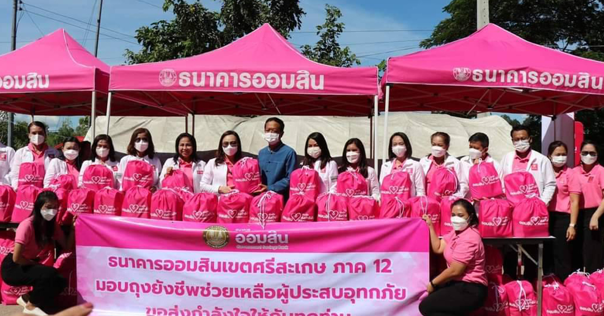 นายวิทัย รัตนากร ผู้อำนวยการธนาคารออมสิน มอบหมายให้ นางปิยหทัย ปิยะรัมย์ ผู้ช่วยผู้อำนวยการธนาคารออมสินสายงานกิจการสาขา 4 นายธัชกร กล่อมจิต รักษาการผู้อำนวยการภาค12 พร้อมด้วยคณะผู้บริหาร พนักงาน และลูกจ้างธนาคารออมสิน ส่งมอบความห่วงใยให้กับผู้ประสบอุทกภัยในพื้นที่จังหวัดศรีสะเกษ โดยมีนายชัยวัฒน์ ลิ้มลิขิตอักษร ผู้อำนวยการสำนักบริหารพื้นที่อนุรักษ์ (สบอ.)9 อุบลราชธานี และผู้สื่อข่าวจากเพจอีจัน เป็นผู้แทนรับมอบ ซึ่งได้มีกานนำถุงยังชีพ จำนวน 50 ชุด น้ำดื่มจำนวน 1,200 ขวด ส่งทางอากาศให้ประชาชนที่อาศัยในบ้านเรือนไม่สามารถออกมารับได้และความช่วยเหลือยังเข้าไม่ถึง