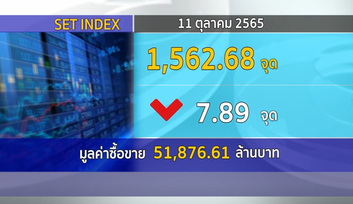 กทม. 11 ต.ค.-ตลาดหลักทรัพย์ ปิดวันนี้ที่ระดับ 1,562.68 ลดลง 7.89 จุด (-0.50 %) มูลค่าการซื้อขาย 51,876.61 ล้านบาท