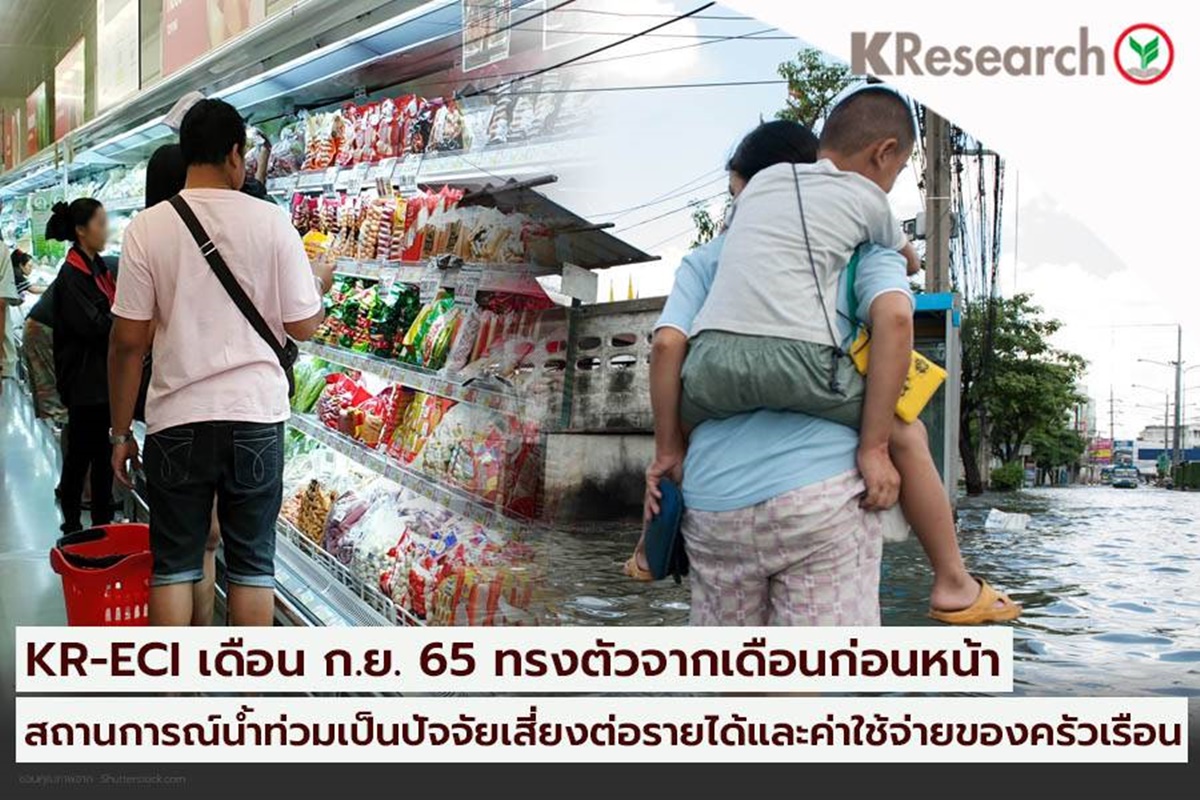 กรุงเทพฯ 11 ต.ค. – ศูนย์วิจัยกสิกรไทย เผยภาวะเศรษฐกิจและการครองชีพของครัวเรือน (KR-ECI) เดือน ก.ย.65 ทรงตัว แต่หวั่นน้ำท่วมเข้ามาเป็นปัจจัยเสี่ยงสำคัญต่อภาวะรายได้และค่าใช้จ่ายของครัวเรือน