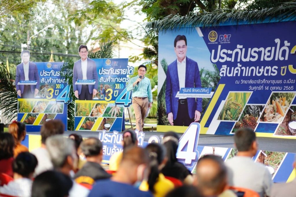 นายจุรินทร์ ลักษณวิศิษฏ์ รองนายกรัฐมนตรีและรัฐมนตรีว่าการกระทรวงพาณิชย์ เปิดเผยในการลงพื้นที่ติดตามความคืบหน้าโครงการประกันรายได้เกษตรกร และเป็นประธานในพิธีมอบเช็คชําระหนี้และมอบโฉนดที่ดินของกองทุนฟื้นฟูและพัฒนาเกษตรกรให้แก่เกษตรกรจังหวัดชุมพร ที่วิทยาลัยอาชีวศึกษาชุมพร อําเภอเมือง จังหวัดชุมพร ว่า นโยบายประกันรายได้ เกิดขึ้นตอนที่พรรคประชาธิปัตย์เข้าร่วมรัฐบาลชุดนี้ ซึ่งขณะนี้เข้าสู่ปีที่ 4 แล้ว จะเป็นหลักประกันให้กับพี่น้องเกษตรกรให้มีรายได้สองส่วนจากราคาที่ขายในตลาดและส่วนต่างจากรายได้ที่ประกัน โดยโอนเข้าบัญชีธนาคารเพื่อการเกษตรและสหกรณ์การเกษตร (ธ.ก.ส.) โดยตรง มีการประกันรายได้พืชเกษตร 5 ชนิด ประกอบด้วยข้าว มันสำปะหลัง ยางพารา ปาล์มน้ำมัน และข้าวโพดเลี้ยงสัตว์ ซึ่งที่ผ่านมา ช่วยให้พี่น้องชาวปักษ์ใต้ลืมตาอ้าปากได้