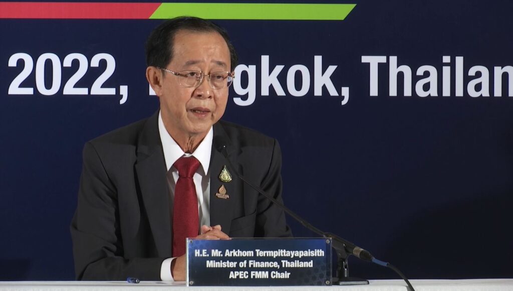 นายอาคม เติมพิทยาไพสิฐ รัฐมนตรีว่าการกระทรวงการคลัง แถลงผลประชุมรัฐมนตรีว่าการกระทรวงการคลังเอเปค ครั้งที่ 29 ภายใต้แนวคิด “ขับเคลื่อนเศรษฐกิจดิจิทัล มุ่งสู่การเงิน การคลังยั่งยืน” หลังจากหลายประเทศทั่วโลก เผชิญกับปัญหาแพร่ระบาดโควิด-19 ปัญหารัสเซีย-ยูเครน ที่ยังยืดเยื้อ ผ่านกลไก กองทุนสีเขียวอาเซียน การออกพันธบัตรสีเขียว พันธบัตรเพื่อสังคม เพื่อร่วมกันดูแลสิ่งแวดล้อม