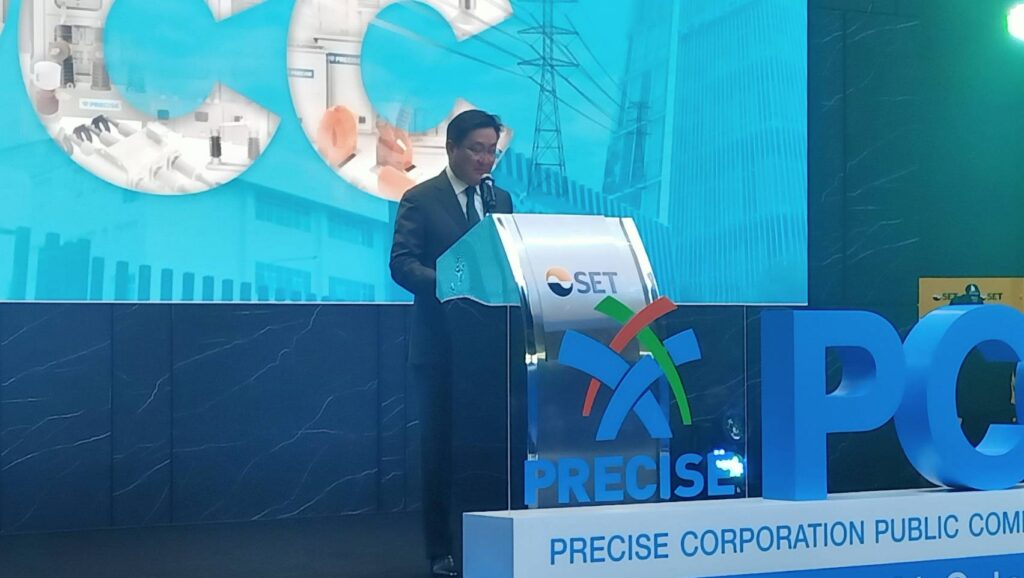 นายภากร ปิตธวัชชัย ผู้จัดการตลาดหลักทรัพย์แห่งประเทศไทย ระบุว่า ขอแสดงความยินดีที่บริษัท พรีไซซ คอร์ปอเรชั่น ฯ เข้าซื้อขายในตลาดหลักทรัพย์แห่งประเทศไทย เป็นวันแรก ด้วยมูลค่าหลักทรัพย์ ณ ราคา IPO 4,906.48 ล้านบาท โดย PCC ดำเนินธุรกิจโดยการถือหุ้นบริษัทอื่น (holding company) ประกอบด้วย 3 ธุรกิจหลัก คือ 1) ธุรกิจผลิตและจำหน่ายอุปกรณ์ในระบบจ่ายไฟฟ้า 2) ธุรกิจรับเหมาก่อสร้างสถานีไฟฟ้าแรงสูงและสายส่งไฟฟ้าแรงสูง พร้อมผลิตและติดตั้งระบบควบคุม และ 3) ธุรกิจผลิตและจำหน่ายกระแสไฟฟ้าจากพลังงานทดแทน ซึ่งถือได้ว่าบริษัท มีจุดเด่นด้านระบบไฟฟ้าแบบครบวงจร การเข้าจะทะเบียนในตลาดหลักทรัพย์ฯ เป็นการเพิ่มโอกาส ในการเติบโต และเพิ่มศักยภาพการแข่งขันของบริษัท โดยบริษัทมีแผนนำเงินทีได้จากภเป็นเงินทุนหมุนเวียน เชื่อว่า ด้วยประสบการณ์และวิทัศน์ของทีมผู้บริหารที่ยาวนานกว่า 30 ปี ประกอบการบริหารที่ยึดหลักจรยธรรมและมีบรรษัทบาลที่ดี ย่อมนำพาบริษัทเติบโตอย่างยั่งยืน สร้างผลตอบแทนต่อผู้ลงทุนและผู้มีส่วนได้เสียทุกกลุ่ม